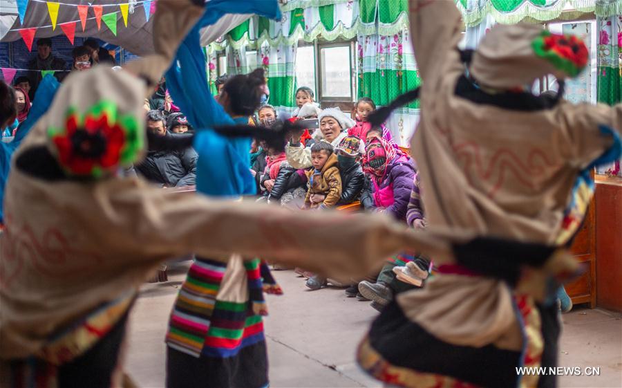 Mieszkańcy wsi Garco w powiecie Shuanghu świętują.