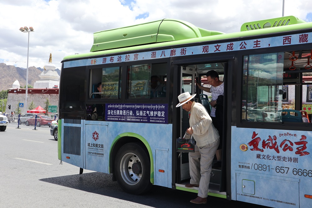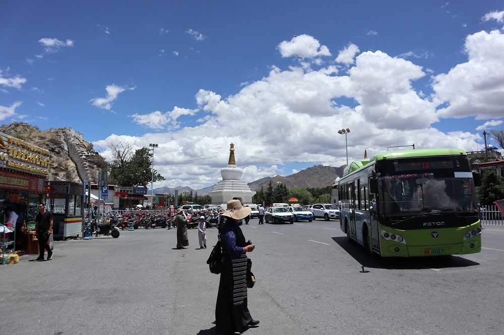 Nowe autobusy niskoemisyjne przewożą pasażerów po ulicach Lhasy. [Zdjęcia dostarczone przez chinadaily.com.cn]