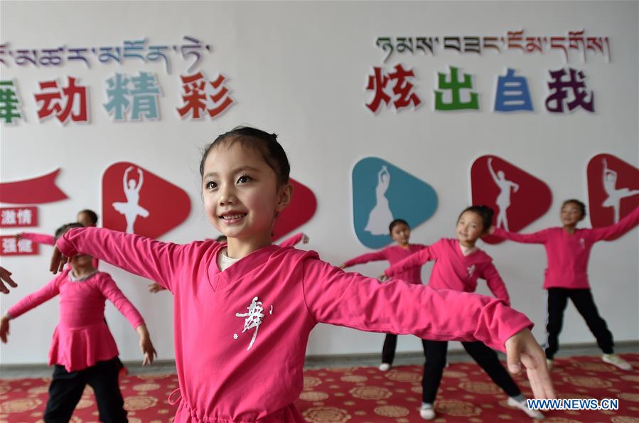 Dziewczynki ćwiczą tradycyjny taniec tybetański.[Foto:Xinhua/Chogo]