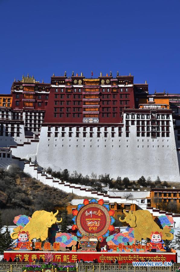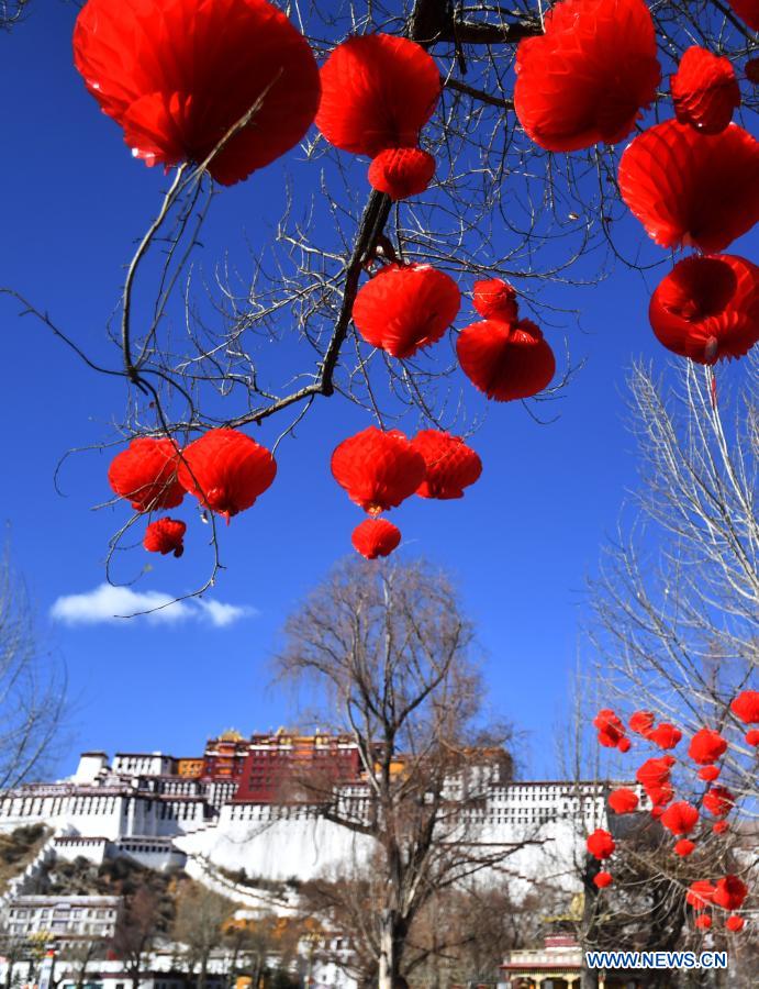 Świąteczne symbole przed Pałacem Potala w Lhasie. (Foto:Xinhua / Chogo)