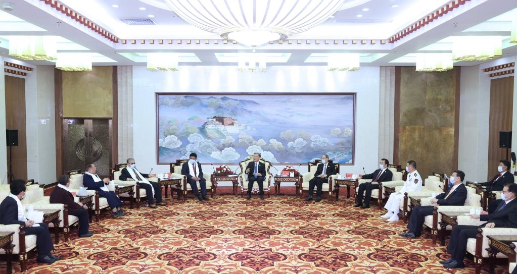 Upoważniony przez Komitet Centralny KPCh i sekretarza generalnego KC KPCh Xi Jinpinga, Wang złożył spotkał się z czołowymi przedstawicielami władz Tybetu i weteranami, m.in. w hotelu Lhasa.