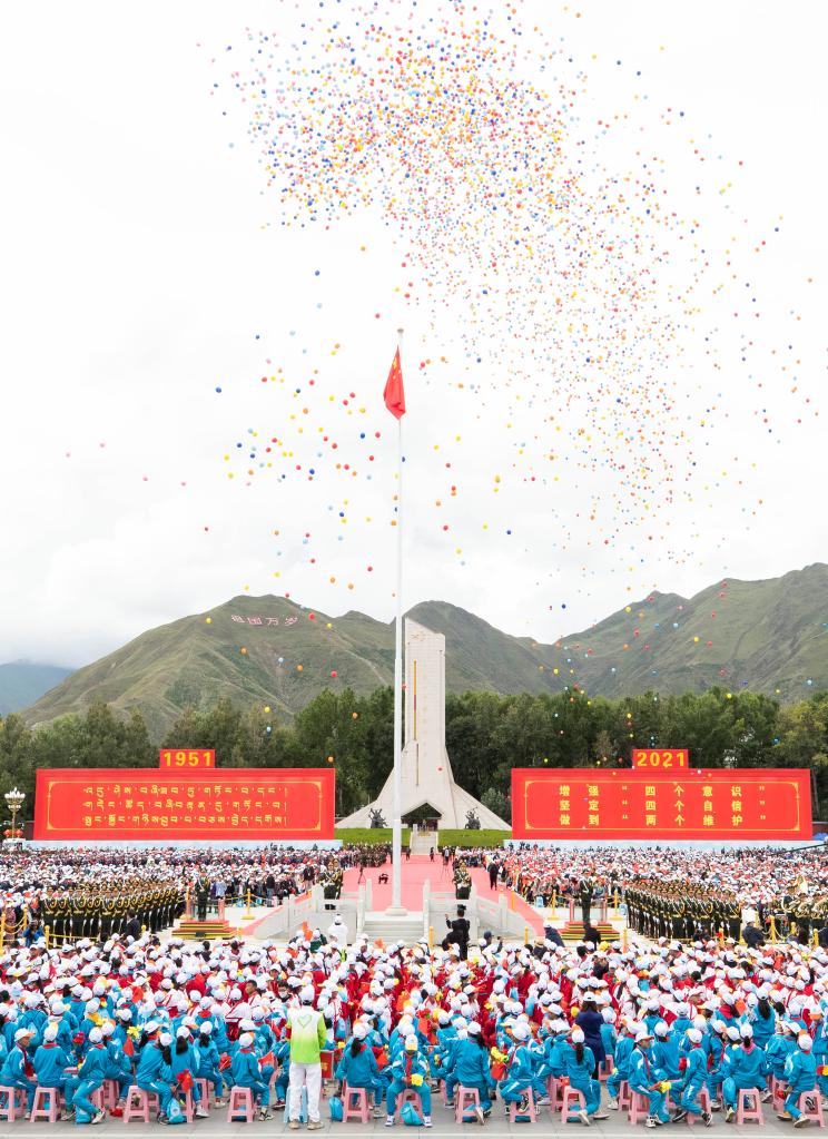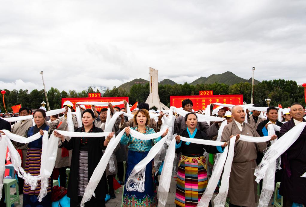 W dniu 19 sierpnia 2021 r. na placu Pałacu Potala w Lhasie odbyło się wielkie zgromadzenie z okazji 70. rocznicy pokojowego wyzwolenia Tybetu. W zgromadzenie wzięło udział ponad 20 000 osób reprezentujących różne grupy etniczne. [Zdjęcie/Xinhua]