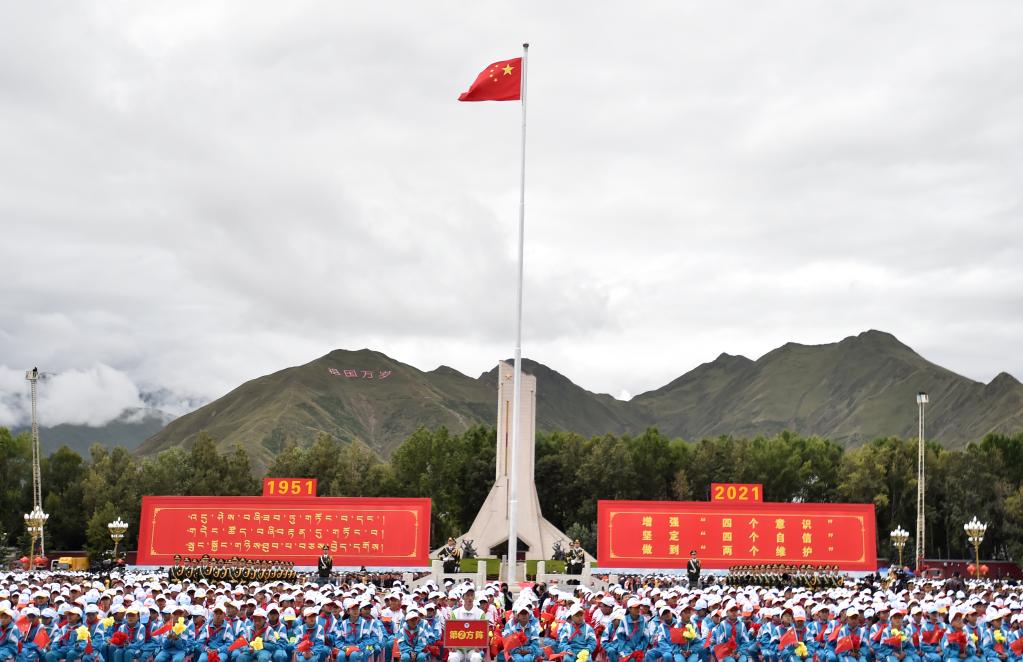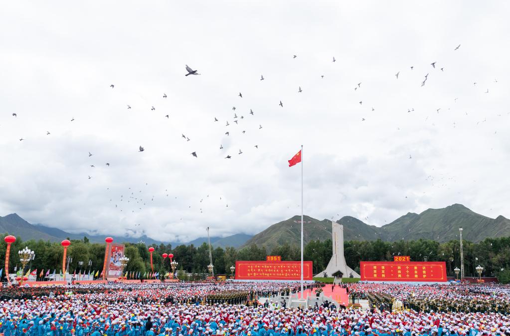 Uroczyste zgromadzenie z okazji 70. rocznicy pokojowego wyzwolenia Tybetu na placu Pałacu Potala w Lhasie, autonomicznym regionie Tybetu w południowo-zachodnich Chinach, 19 sierpnia 2021 r. [Zdjęcie/Xinhua]