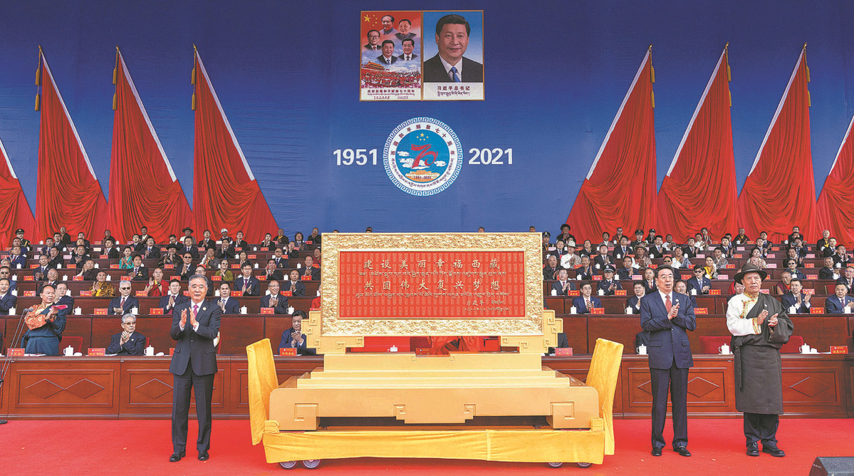 Wyzwoleniu i rozwojowi Tybetu poświęcono wiele uwagi ze względu na szczególną historię regionu autonomicznego, strategiczne położenie geograficzne i słabe podstawy rozwoju, stwierdziła dodając, że wyzwolenie i rozwój regionu podkreśliły znaczenie stabilizacji i zarządzania obszarami przygranicznymi.