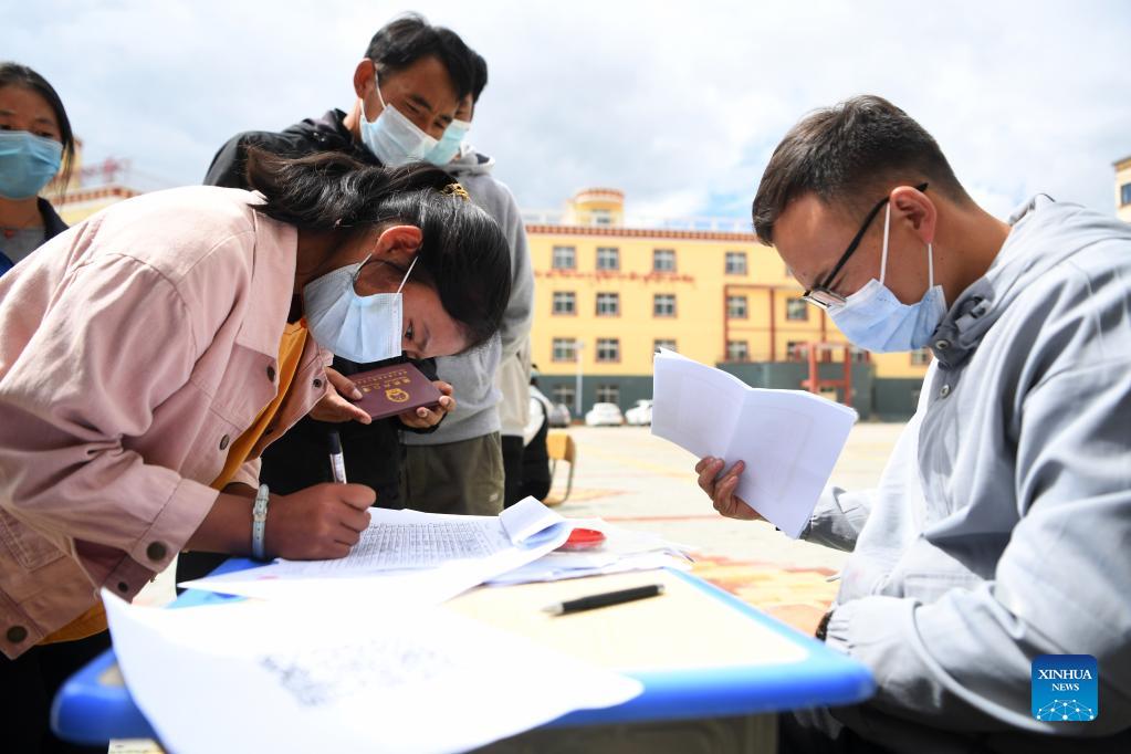 Uczennica dziesiątej klasy rejestruje swoje dane w tybetańskiej szkole średniej Luqu, 30 sierpnia 2021 r. (foto:Xinhua/Du Zheyu)