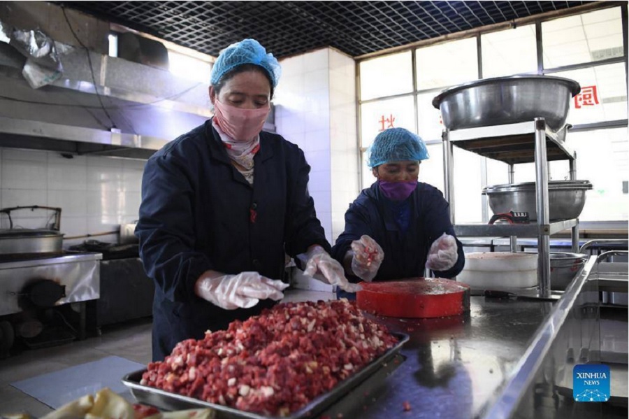 Pracownicy Tybetańskiej Szkoły Średniej w Luqu przygotowują obiad dla uczniów, 30 sierpnia 2021 r. (foto:Xinhua/Du Zheyu)
