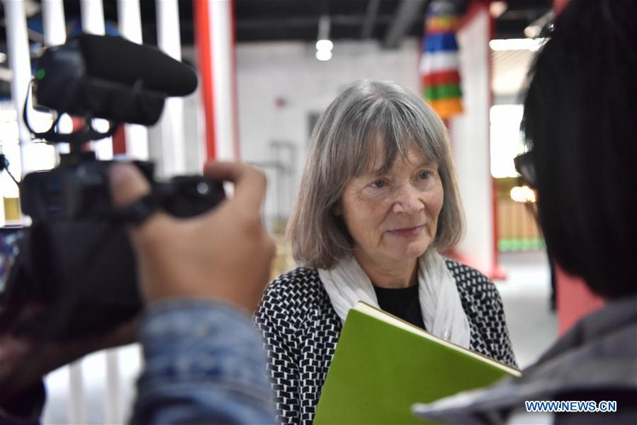 Elizabeth Mcleod, CEO Meridian Line Films w Wielkiej Brytanii, wypowiada się podczas spotkania w makerspace w Nyingchi.Foto: (Xinhua / Zhou Jinshuai)