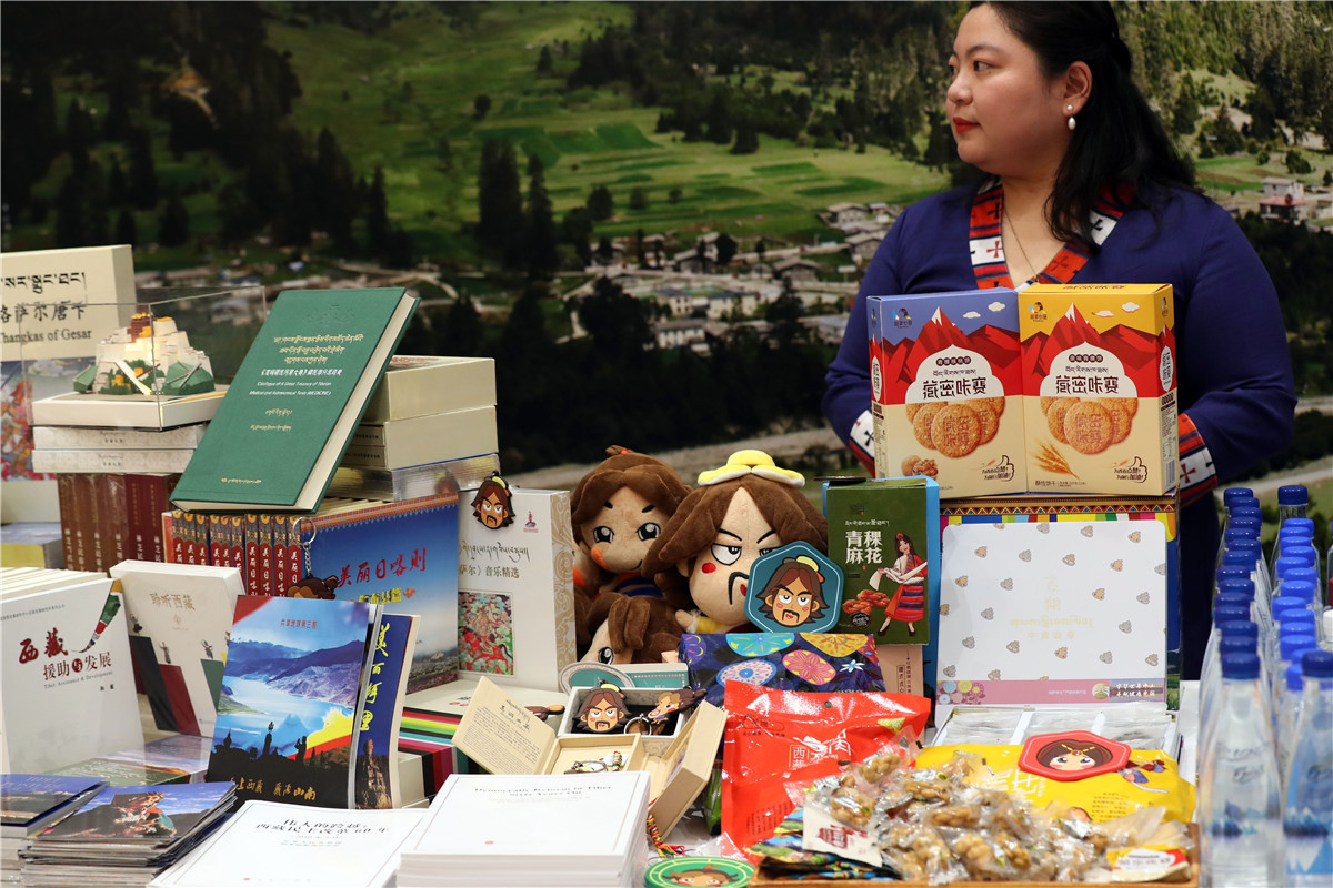 Wyroby i produkty charakterystyczne dla Tybetu prezentowane na wystawie. [Zdjęcie: Zhu Xingxin / chinadaily.com.cn]