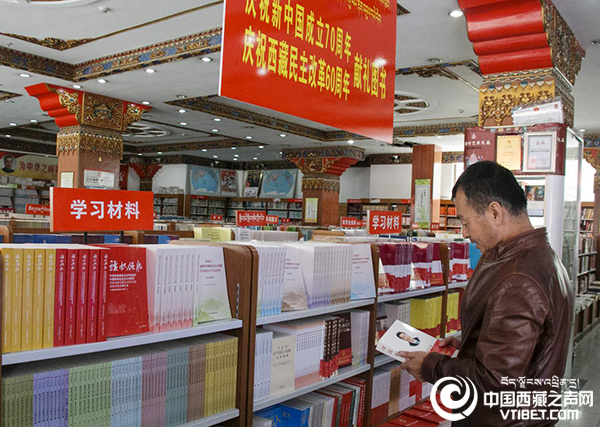 Biblioteki Lhasy utworzyły specjalne działy, gdzie czytelnicy mogą znaleźć książki związane tematycznie z 70-tą rocznicą ChRL. (Zdjęcie: VTIBET.com)