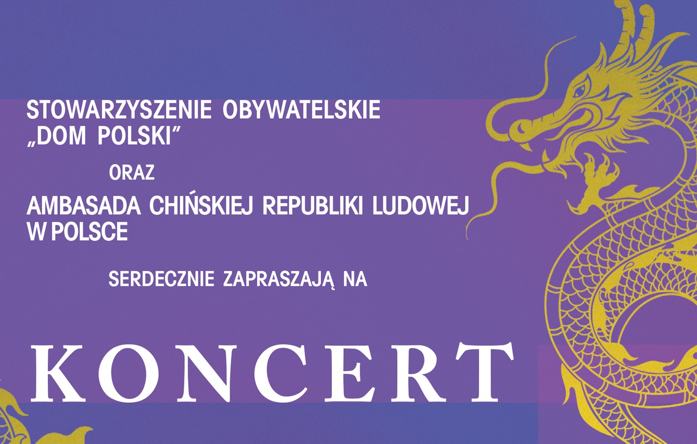 Stowarzyszenie Obywatelskie "Dom Polski" i Ambasada Chińskiej Republiki Ludowej W Polsce zapraszają na Uroczysty Koncert z okazji 73 Rocznicy Powstania ChRL.