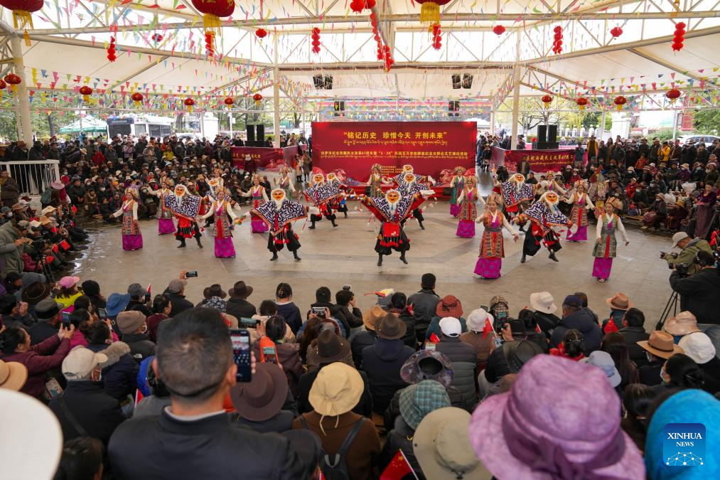 28 marca 1959 r. mieszkańcy Xizang rozpoczęli reformę demokratyczną, uwalniając milion chłopów pańszczyźnianych. W 2009 r. regionalny parlament ogłosił 28 marca dniem upamiętniającym wyzwolenie miliona chłopów pańszczyźnianych. (Xinhua/Tenzin Nyida)